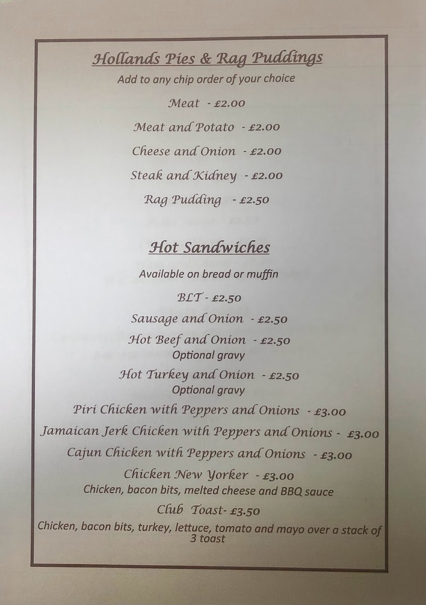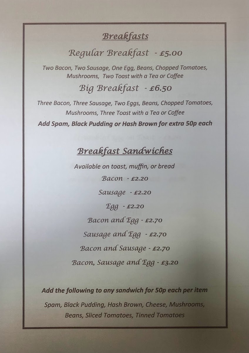 The menu doesn’t stop there! Additional extras include freshly baked muffins and toasted teacakes, promising a warm and inviting treat. Customers rave about the delicious and freshly cooked offerings at reasonable prices, making it a treasure in town. With a reputation for excellent service, it's no surprise that guests leave feeling welcomed and eager to return. Don't forget to try Amy's acclaimed brownies—they're the perfect sweet ending to a satisfying meal!